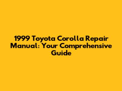 1999 Toyota Corolla Repair Manual: Your Comprehensive Guide