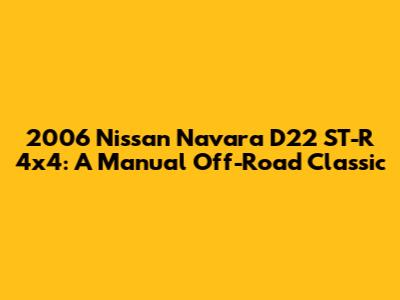 Hey guys, gather 'round because today we're taking a deep dive into a legend of the off-road world – the 2006 Nissan Navara ST-R D22 S2 Manual 4x4. Man, oh man, this ute is a real stunner, a true workhorse that's built tough and ready for anything you throw at it. If you're a fan of solid engineering, go-anywhere capability, and that satisfying clunk of a manual gearbox engaging, then you're going to love what this Navara brings to the table. We're talking about a vehicle that’s not just about getting from A to B; it’s about the adventure, the challenge, and the sheer joy of conquering tough terrain. This isn't some fancy city cruiser; this is a ute that’s got grit, a no-nonsense attitude, and the ability to impress even the most seasoned off-road enthusiasts. From its rugged exterior styling to its functional interior, the 2006 Navara ST-R D22 S2 was designed with purpose. It embodies the spirit of adventure, and for many, it represents a peak in the D22 generation's evolution, especially for those who appreciate the tactile engagement of a manual transmission. Let's get into why this particular model still holds a special place in the hearts of many 4x4 aficionados.