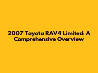Unveiling the 2007 Toyota RAV4 Limited: Key Features
