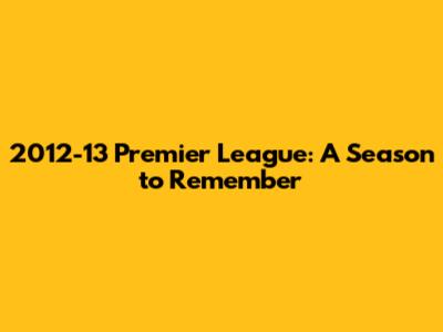 2012-13 Premier League: A Season To Remember