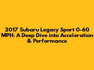 Hey car enthusiasts! Ever wondered about the 2017 Subaru Legacy Sport 0-60 mph time? Well, buckle up, because we're about to dive deep into the acceleration capabilities and overall performance of this sporty sedan. We'll break down the factors influencing its speed, compare it to its competitors, and see what makes the Legacy Sport a compelling choice for drivers. So, if you're curious about how quickly this car can go from zero to sixty miles per hour, you're in the right place, folks! Get ready for a thrilling ride, as we explore the heart of this Subaru and uncover everything that makes it tick. We will also touch base on its engine specs, transmission details, and how it handles on the road. This deep dive will give you all the info you need. Let’s get started.