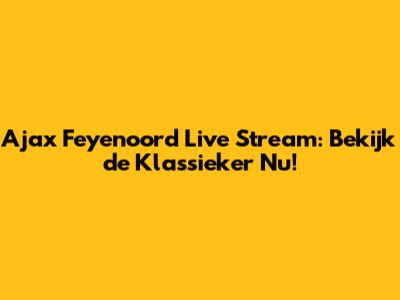 Ajax Feyenoord Live Stream: Bekijk De Klassieker Nu!