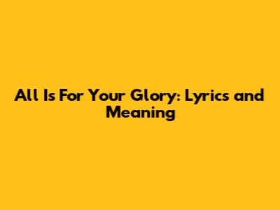All Is For Your Glory: Lyrics And Meaning