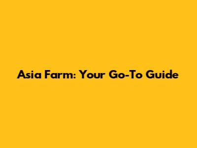Asia Farm: Your Go-To Guide