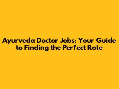 Ayurveda Doctor Jobs: Your Guide To Finding The Perfect Role