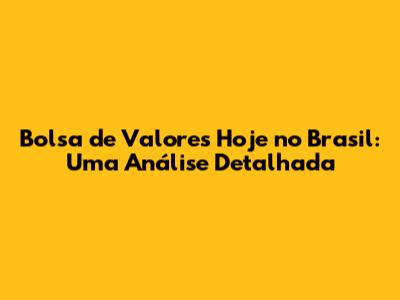 Bolsa De Valores Hoje No Brasil: Análise E Perspectivas