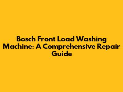 Bosch Front Load Washer: Troubleshooting & Repair Guide