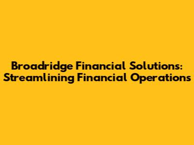 Are you looking to dive into the world of Broadridge Financial Solutions? Well, buckle up! In this article, we're going to break down everything you need to know about this powerhouse company, from its core services to its impact on the financial industry. Broadridge is a big name in the financial technology space, and understanding what they do can give you a serious edge, whether you're an investor, a financial professional, or just someone curious about the nuts and bolts of the market.