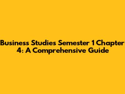 Business Studies Semester 1 Chapter 4: A Comprehensive Guide