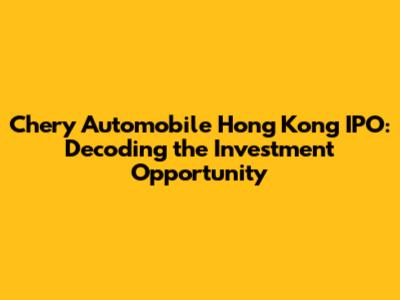 Hey there, investment enthusiasts! Ever heard of Chery Automobile? If you're a car aficionado or just someone looking for a solid investment opportunity, you probably have. Chery Automobile, a prominent player in China's automotive industry, is making some serious waves with its planned Hong Kong IPO. This is a big deal, and if you're like me, you're probably wondering what it all means. So, let's dive in and break down everything you need to know about the Chery Automobile Hong Kong IPO, from the company's background to what this IPO could mean for your portfolio. We're going to cover everything, so buckle up!