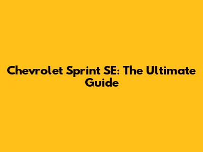 Chevrolet Sprint SE: The Ultimate Guide