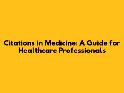 Citations In Medicine: A Guide For Healthcare Professionals
