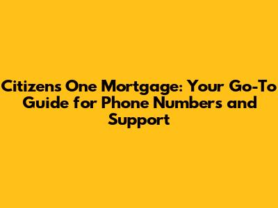 • What is the Citizens One Mortgage phone number for customer service? The most reliable way to find the customer service phone number is to visit the official Citizens One Mortgage website or check your loan documents. Ensure that the phone number is up-to-date and accurate before contacting them. Always double-check the number to make sure you're getting the most current information. The correct phone number can be the difference between a quick resolution and a frustrating experience.