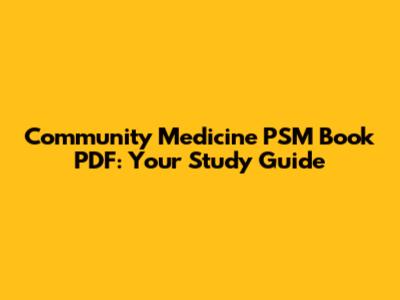 Community Medicine PSM Book PDF: Your Study Guide