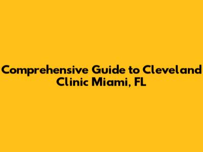 Comprehensive Guide To Cleveland Clinic Miami, FL