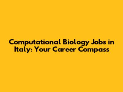 Computational Biology Jobs In Italy: Your Career Guide
