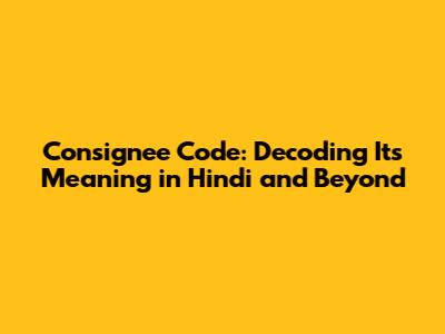 Consignee Code: Unlocking Its Hindi Meaning & Significance
