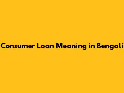 Consumer Loan Meaning In Bengali