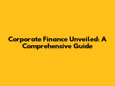 Corporate Finance Unveiled: A Comprehensive Guide