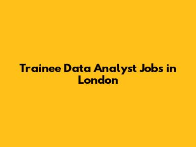 Data Analyst Jobs In London For Trainees