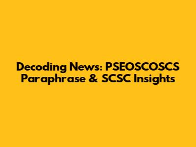 Decoding News: PSEOSCOSCS Paraphrase & SCSC Insights