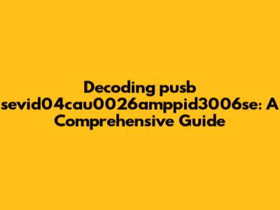 Decoding Pusb Sevid04cau0026amppid3006se: A Quick Guide