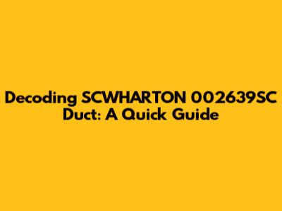Decoding SCWHARTON 002639SC Duct: A Quick Guide