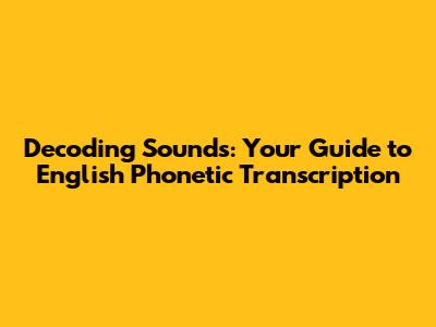 Decoding Sounds: Your Guide To English Phonetic Transcription