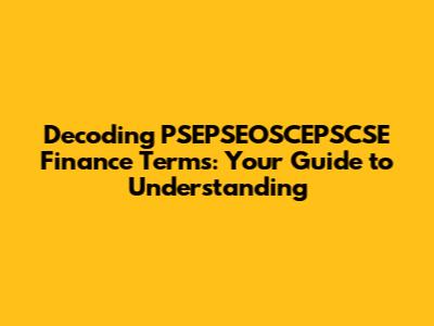 Hey finance enthusiasts and curious minds! Ever stumbled upon the term PSEPSEOSCEPSCSE and felt a little lost in the financial jungle? Don't worry, you're not alone! Financial jargon can be a real head-scratcher, but understanding it is key to making informed decisions about your money. Today, we're going to break down this term, explore its meaning, and shed some light on how it fits into the bigger picture of finance. This guide is designed to be your friendly companion through the often-complex world of financial terminology. Think of it as a cheat sheet, a compass, and a helpful buddy all rolled into one. Ready to dive in? Let's go!
