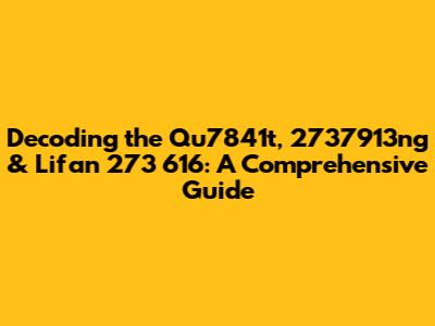 Decoding The Qu7841t, 2737913ng & Lifan 273 616: A Comprehensive Guide