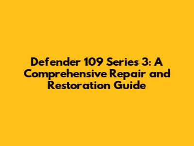 Defender 109 Series 3: Restoration & Repair Guide