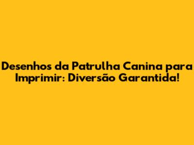 Desenhos Da Patrulha Canina Para Imprimir: Diversão Garantida!