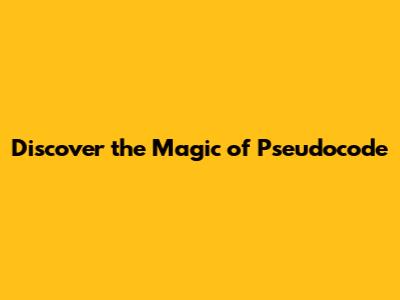 Discover The Magic Of Pseudocode