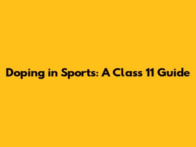 Doping In Sports: A Class 11 Guide