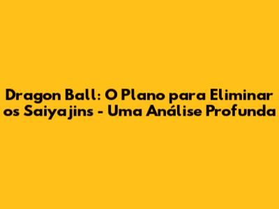Dragon Ball: O Plano Para Eliminar Os Saiyajins - Uma Análise Profunda