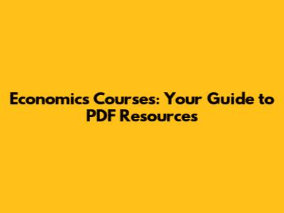Economics Courses: Your Guide To PDF Resources