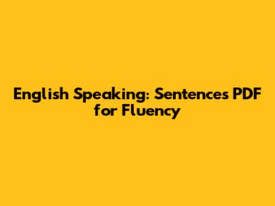 English Speaking: Sentences PDF For Fluency