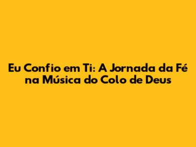 O Colo de Deus é um ministério de música católica conhecido por suas canções que tocam o coração e inspiram a fé. A música "Eu Confio em Ti" é um dos seus maiores sucessos, e a história por trás da canção revela a dedicação e o compromisso do grupo em levar a mensagem de esperança e confiança às pessoas. A canção foi composta com o objetivo de fortalecer a fé dos fiéis e de incentivá-los a confiar em Deus em todos os momentos da vida. A letra, inspirada em passagens bíblicas e na experiência de fé do grupo, convida à reflexão e à oração. A mensagem central da música é a certeza de que Deus está sempre presente, cuidando de nós e nos amparando em todas as situações.