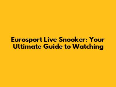 Eurosport Live Snooker: Your Ultimate Guide To Watching