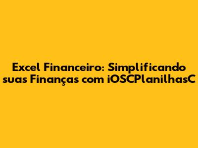 Excel Financeiro: Simplificando Suas Finanças Com IOSCPlanilhasC