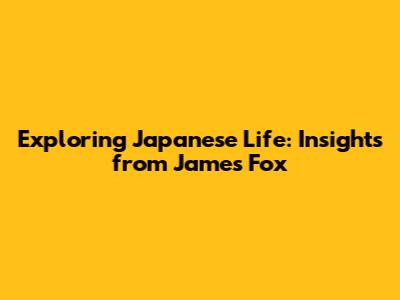 Exploring Japanese Life: Insights From James Fox