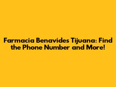 Farmacia Benavides Tijuana: Phone Number & More