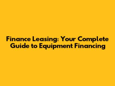 Finance Leasing: Your Complete Guide To Equipment Financing