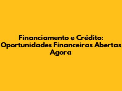 Financiamento e crédito são ferramentas financeiras essenciais para alavancar seus projetos, realizar sonhos e impulsionar o crescimento pessoal e profissional. Neste artigo, vamos mergulhar no mundo das oportunidades financeiras abertas agora, explorando as opções disponíveis, as melhores práticas para conseguir um bom financiamento e como tomar decisões financeiras inteligentes. Se você está pensando em comprar um imóvel, investir em seu negócio, ou simplesmente organizar suas finanças, este guia completo é para você. Acompanhe-nos nesta jornada para desvendar os segredos do financiamento e crédito e transformar seus objetivos em realidade. Nós vamos te mostrar como navegar por esse universo financeiro e encontrar as melhores opções que se encaixam nas suas necessidades e possibilidades.