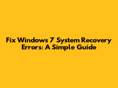 Fix Windows 7 System Recovery Errors: A Simple Guide