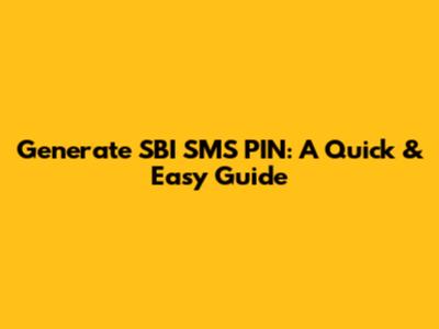 Generate SBI SMS PIN: A Quick & Easy Guide
