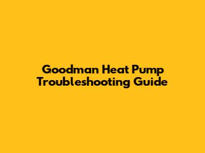 Goodman Heat Pump Troubleshooting Guide