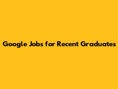Google Jobs For Recent Graduates