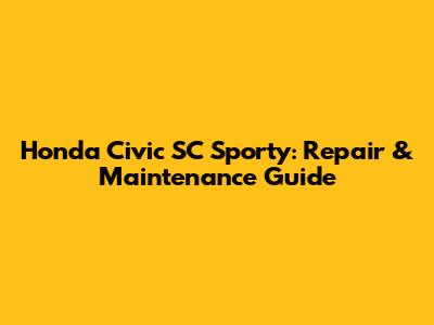 Honda Civic SC Sporty: Repair & Maintenance Tips