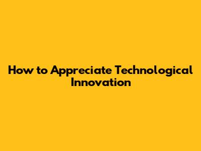 How To Appreciate Technological Innovation